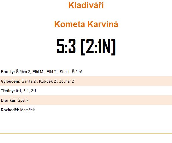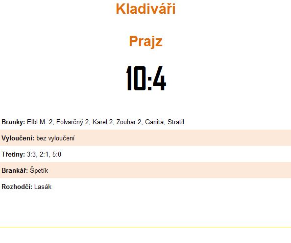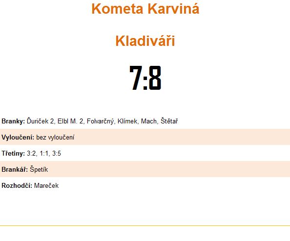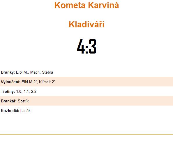 Bohumínská amatérská hokejová liga, 1. zápas čtvrtfinále PLAYOFF, po 10.02. 18:00h